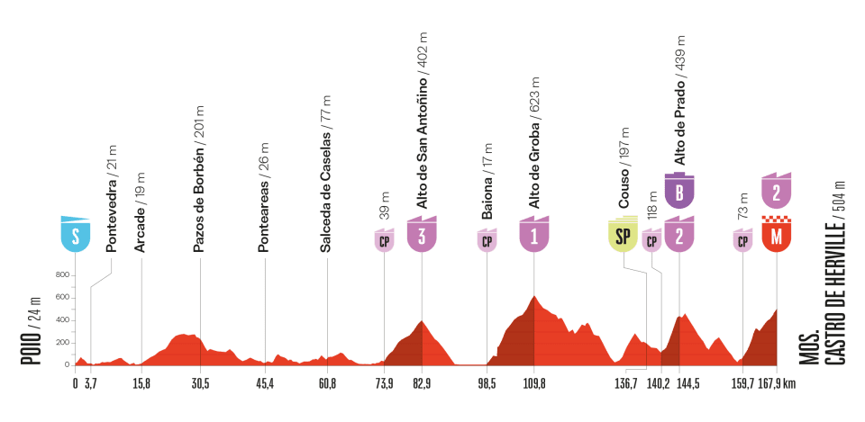 Di 9 sep – Etappe 16: Poio → Mos (172 km) ⛰️↗️